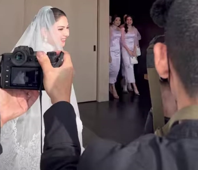 Selanjutnya, tampilan Jessica Mila sudah benar-benar siap. Rambutnya sudah tersanggul rapi dan dihiasi kain putih yang menjuntai.