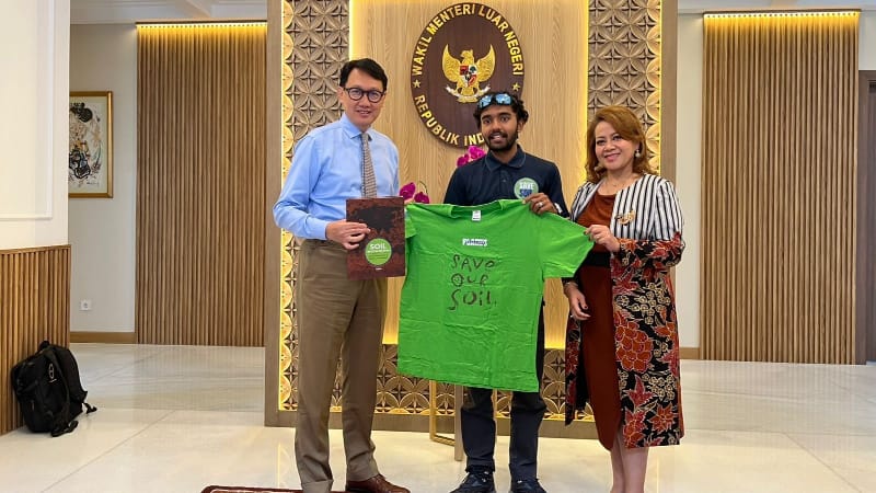 Pada Senin (23/6), Sahil Jha diterima oleh jajaran pejabat Kementerian Luar Negeri Republik Indonesia. Wakil Menteri Luar Negeri, Arif Havas Oegroseno, menegaskan dukungan Indonesia terhadap kampanye kesehatan tanah, mengingat perannya sebagai negara dengan hutan tropis dan kepulauan terbesar ketiga di dunia.