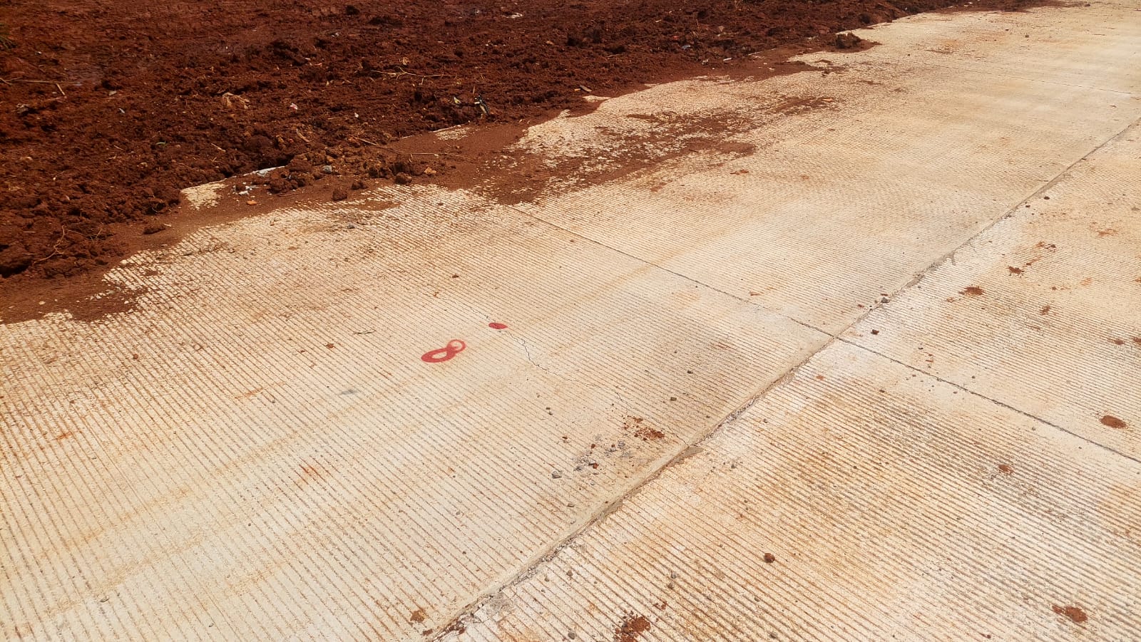 Sementara di sisi selatan, meski betonisasi terhampar sepanjang kurang lebih 650 meter. Namun pada ruas ini ditemukan sekitar 24 titik retakan-retakan yang ditandai dengan cat merah.